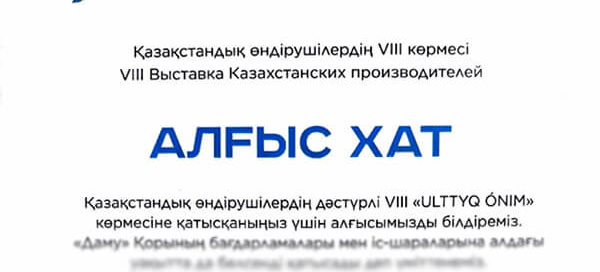 Выражаем благодарность за участие на ежегодной VIII выступление Казахстанских производителей "ULTTYQ ONIM".