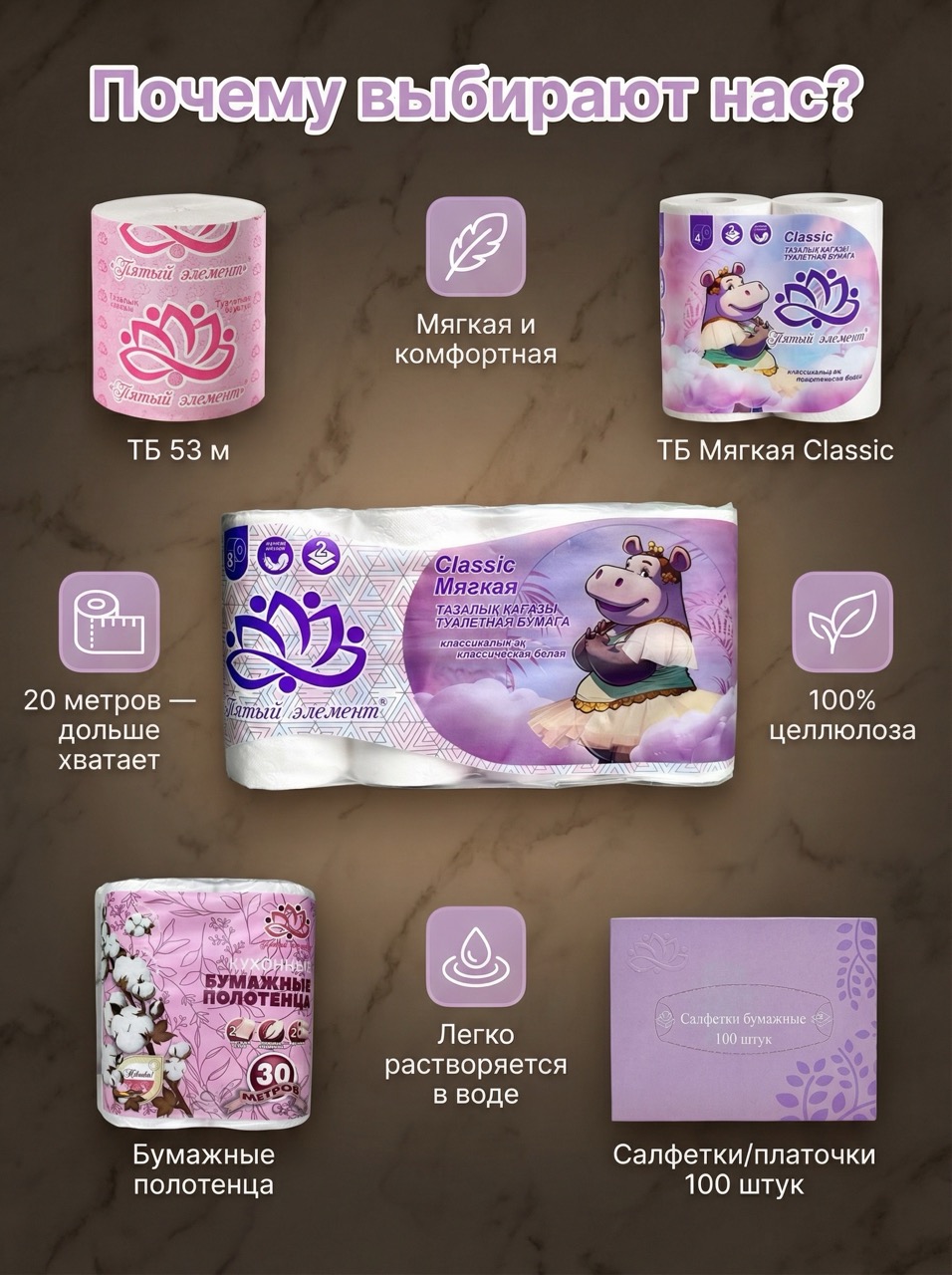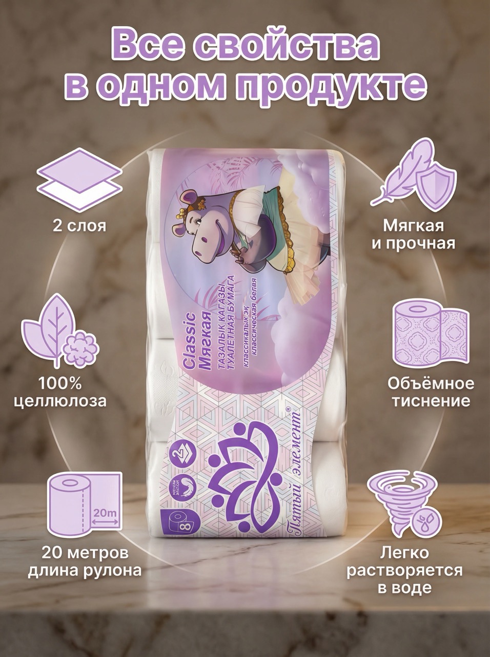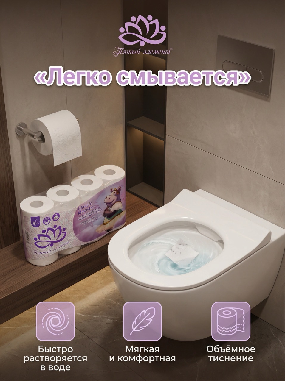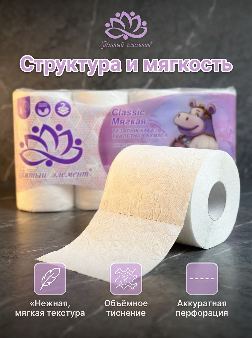 Бумага туалетная белая «Пятый элемент Мягкая» 8 шт. в п/эт. пленке 06