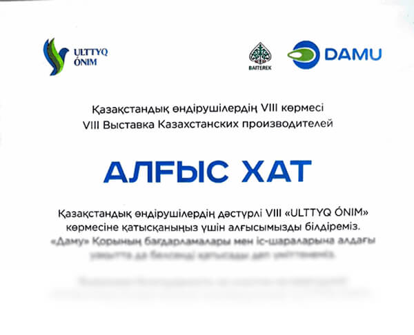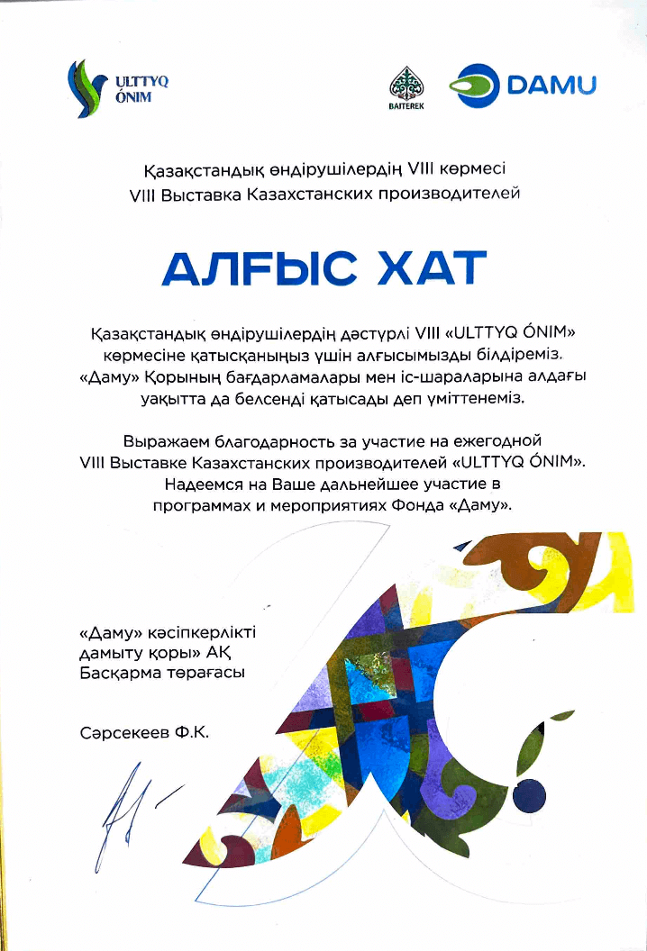 Выражаем благодарность за участие на ежегодной VIII выступление Казахстанских производителей "ULTTYQ ONIM".