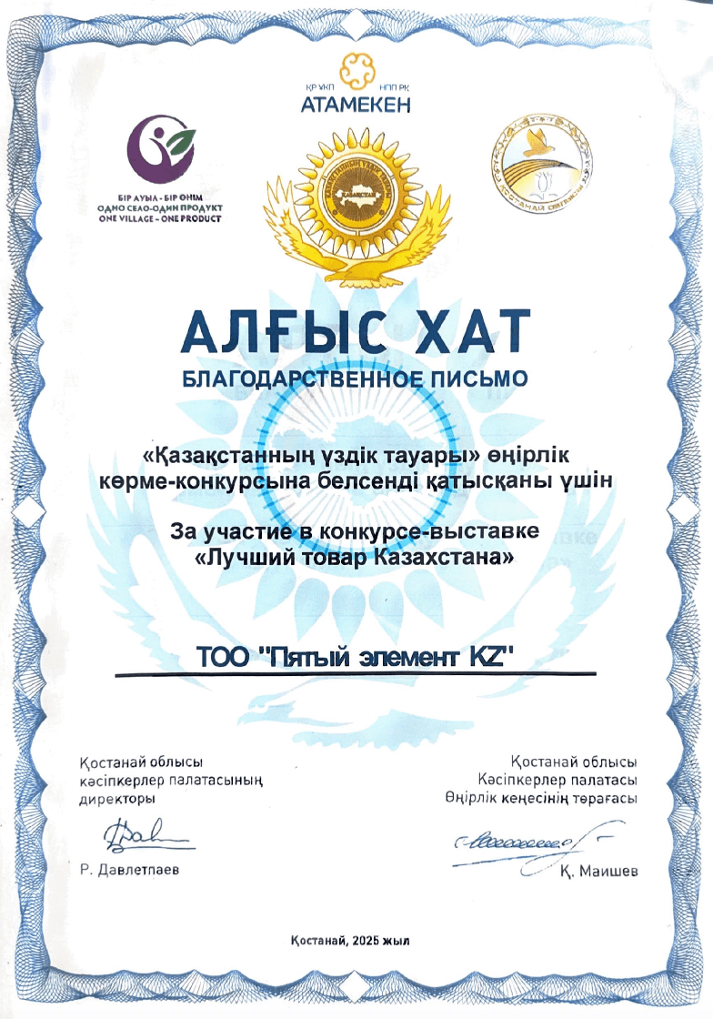 За участие в конкурсе-выступке «Лучший товар Казахстана»